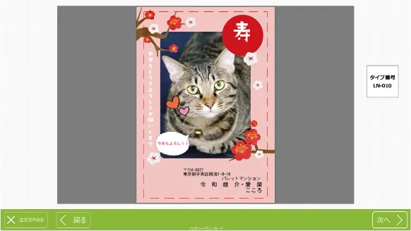 6はがき種の選択と注文枚数を入力する