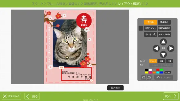 画面右下の「仕上がりを確認」ボタンをクリックすると仕上がりイメージ画面に移ります。編集内容確認し、問題が無ければ画面右下の「次へ」をクリックしてください。