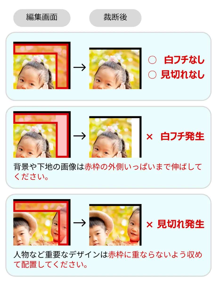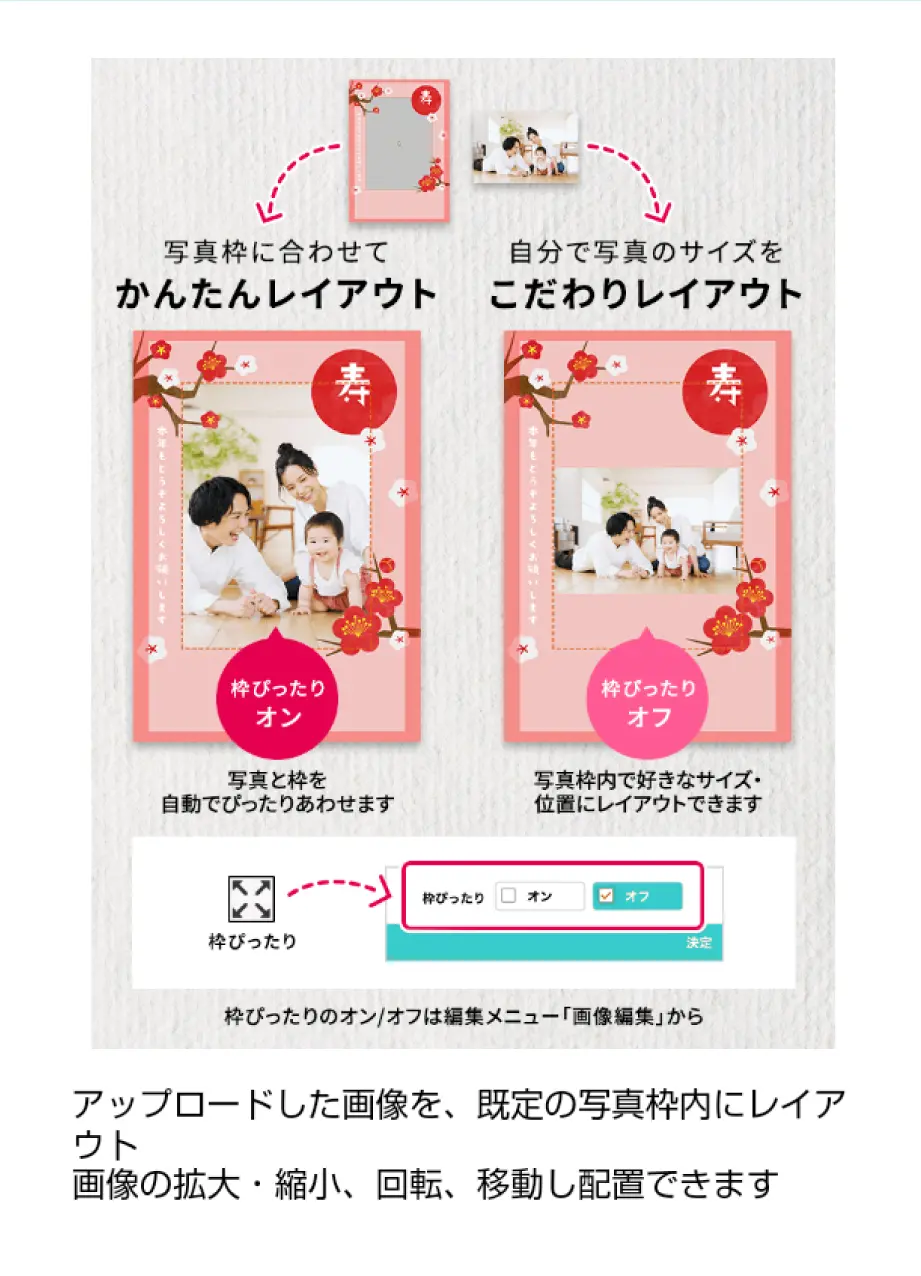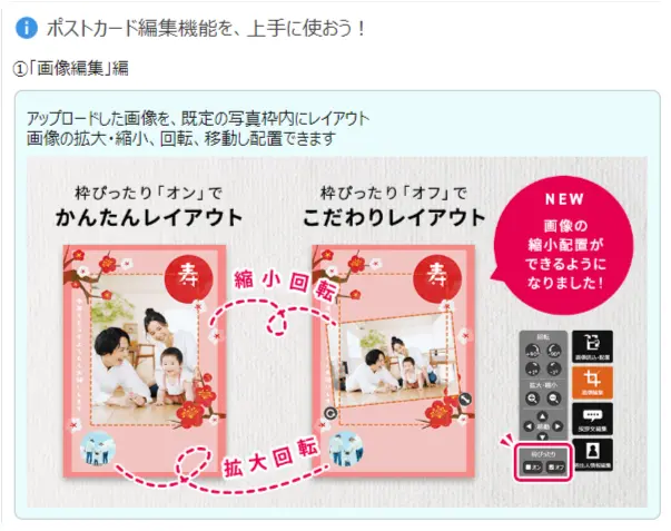 ②画像編集…補正加工、位置・角度・サイズの調整ができます。