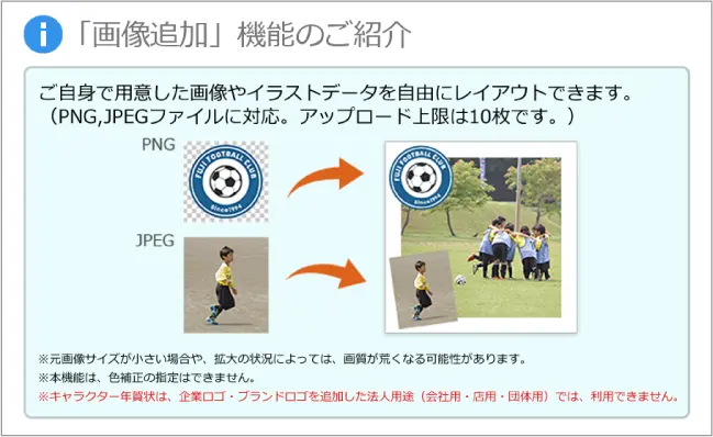 ①画像読込・配置…写真を入れる場合はここから写真を読み込み、配置します。